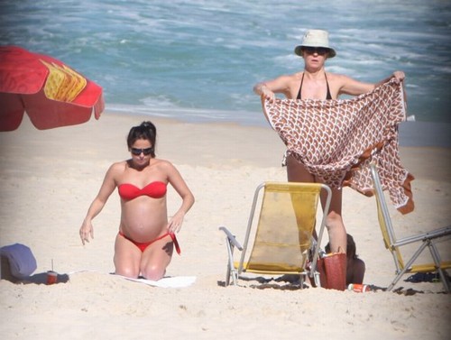 Giovanna Antonelli foi flagrada pegando sol na praia da barra da Tijuca, nesta quinta-feira. Grávida de sete meses de gêmeas, Giovanna mostrou, orgulhosa, o barrigão e se tornou o centro das atenções na areia. A atriz estava acompanhada de amigas e do filho Pietro.